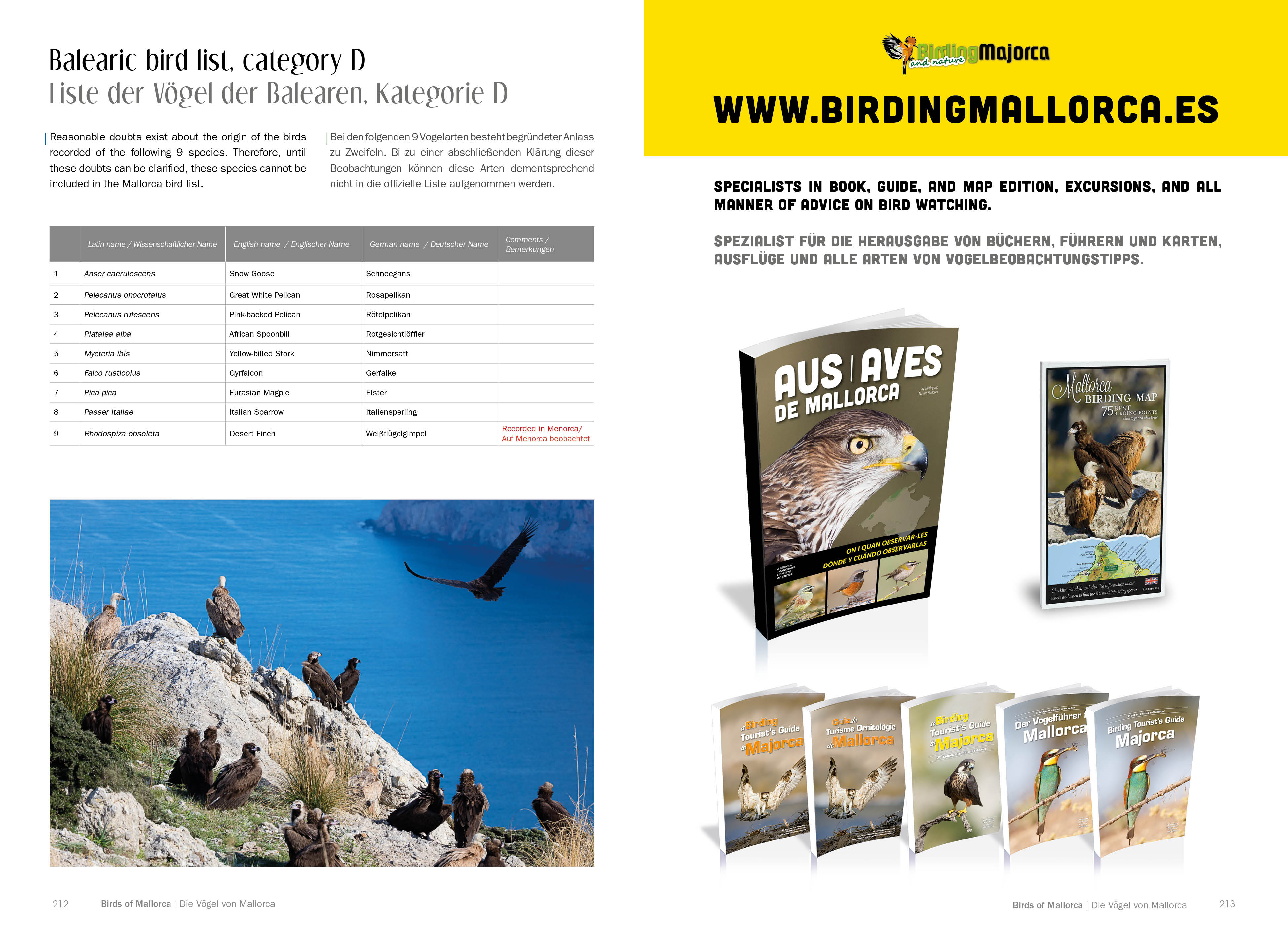 La guia “Birds of - die Vogël von Mallorca” està pensada tant per als no iniciats com per als experts de l’ornitologia balear. En les seves pàgines el lector trobarà: