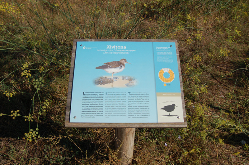 Des de BM21 vàrem procedir al disseny dels diferents continguts que conformen l'exposició que es troba en el Centre d'Informació, tant dels panells interiors del propi centre com dels panells informatius exteriors que es troben al llarg del circuit que circumda la zona humida. Igualment aportem les fotografies i els mapes, tant els petits de cadascuna de les zones de major interès, com el gran mapa de Mallorca que es troba en el centre de la sala, amb la localització dels principals i més importants espais naturals de la illa.